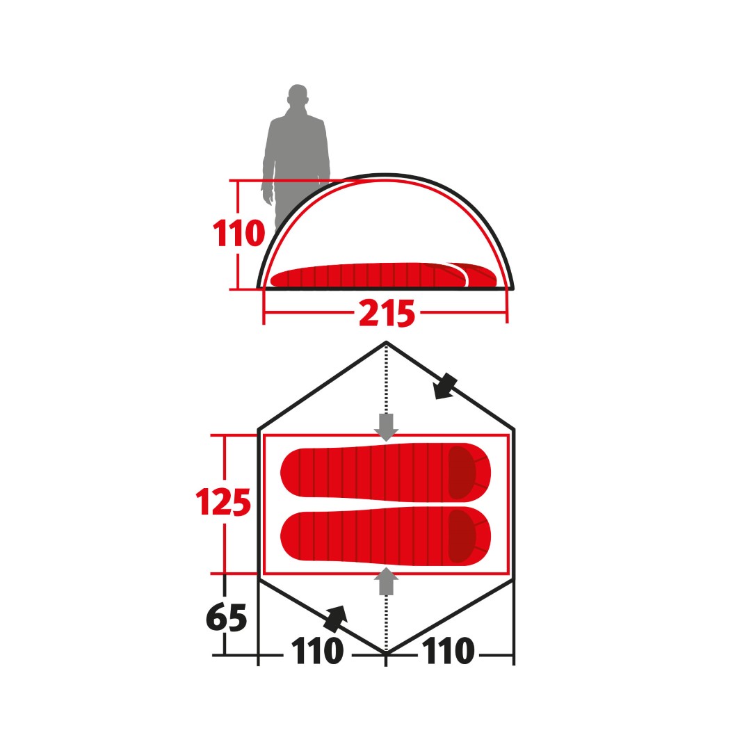 | Maße: | Außenzelt: 260 x 220 x 110 cm; Innenzelt: 215 x 120 x 105 cm |