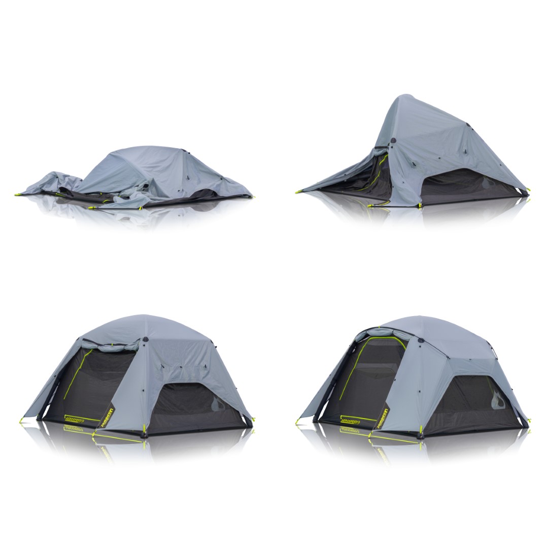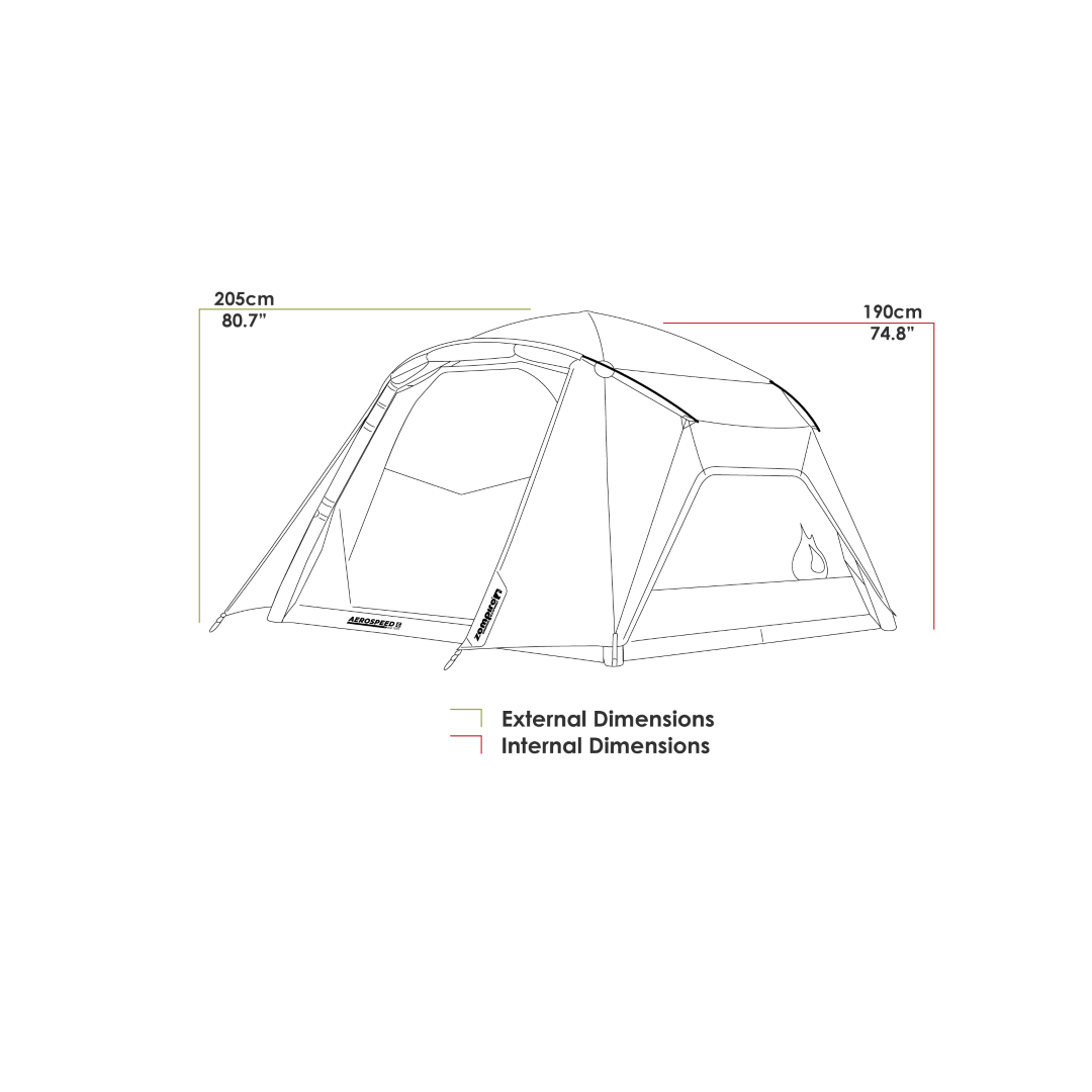 - Schnellaufbau: In wenigen Minuten aufgebaut – das Zelt wird von einem einzigen Punkt aus aufgepumpt.