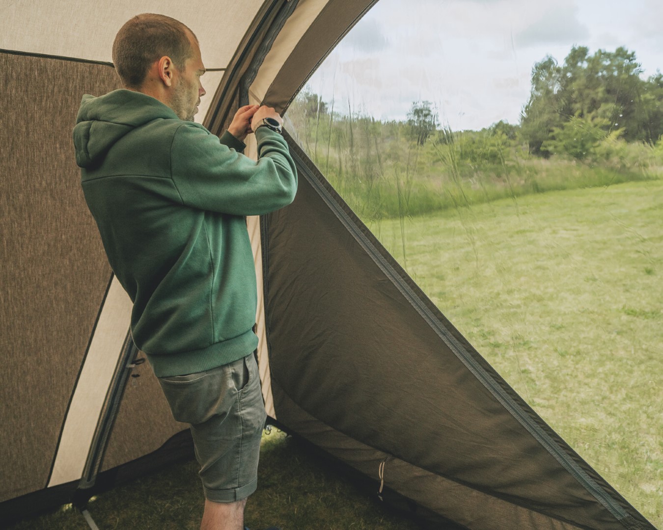 - Zip-up Vorhang mit cleveren Reißverschlusssystem, das sich flexibel öffnen und schließen lässt, je nachdem wie viel Tageslicht im Zelt gewünscht wird