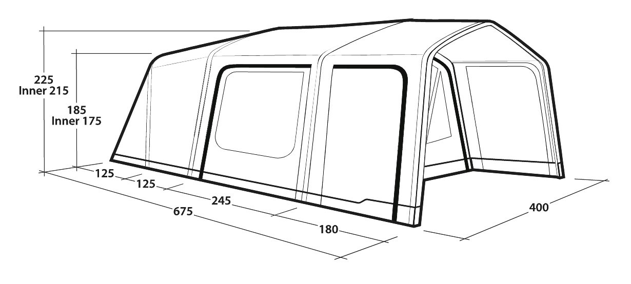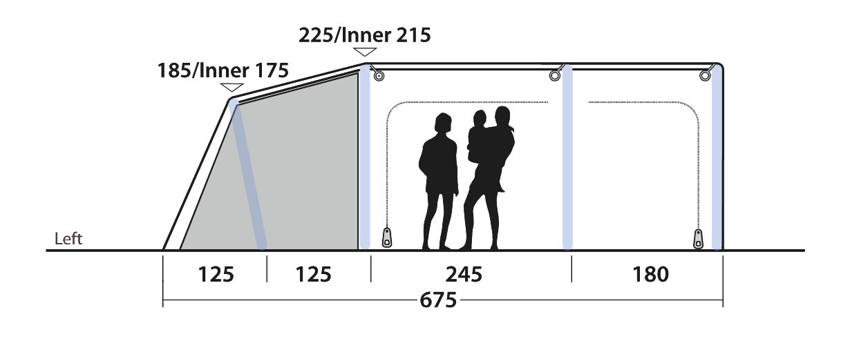 - NEU 2026: Outwell Light System: integriertes Licht am Bogen vor der Schlafkabine, welches mit USB-C Anschluss durch jede beliebige Powerbank (nicht inkludiert) betrieben werden kann.