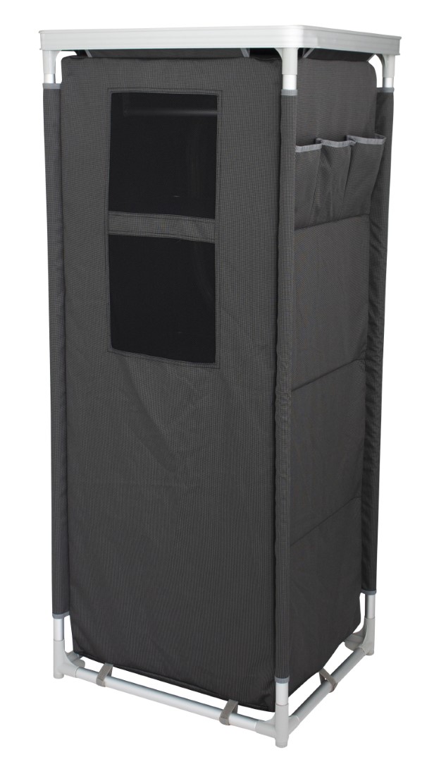 Praktischer Camping Schrank mit Kleiderstange – hoch, geräumig und funktional ist er die perfekte Lösung für eine organisierte Aufbewahrung beim Camping.