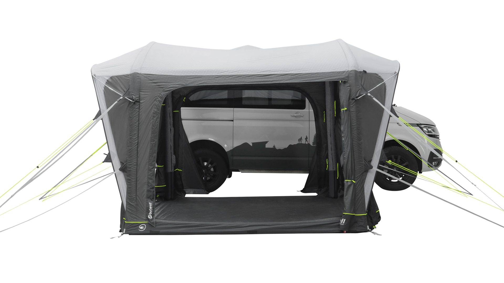 Das Cross PowerAir Vorzelt verbindet sich sehr einfach mit Fahrzeugen, die eine Höhe zwischen 175 und 200 cm haben und bietet einen nahtlosen Übergang zwischen Auto und Wohnraum – ideal für Familien und entspannte Campingurlaube. Der großzügige Innenraum mit vorgeformten PowerAir-Schläuchen sorgt für hervorragende Stehhöhe und ein wohliges Raumgefühl. Das Outwell Light System (Stromquelle nicht enthalten) schafft eine angenehme, indirekte Beleuchtung im gesamten Vorzelt. Auf Wunsch kann auch eine abgedunkelte Schlafkabine Sleep Annexe) eingehängt werden, so dass dem perfekten Schlaf nichts mehr im Wege steht. Dank der beiden seitlichen Regenvordächern und des zuverlässigen Awning Sealing Systems kann das Vorzelt bei jedem Wetter geschützt begangen werden. Es wird parallel zum Fahrzeug angebaut und bietet so eine perfekte Raumausnutzung bei minimaler Stellplatzanforderung. Das Cross PowerAir ist aus Outtex® 6000 Express Ripstop Polyester - dem derzeit hochwertigsten Polyestergewebe, dass der Hersteller Outwell anzubieten hat. Ein gemütlicher, geschützter Rückzugsort – perfekt als Basislager für jede Reise.