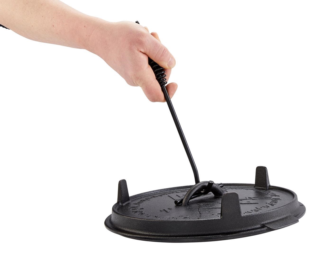 Der nur 240 g leichte Schürhaken aus geschmiedetem Stahl eignet sich ideal zum einfachen und sicheren Heben von Topfdeckeln, sowie zum Schüren von Feuer. Das durchdachte Design vereinfacht die Handhabung und sorgt für Sicherheit, indem das Abrutschen vom Kochdeckel zuverlässig verhindert wird.
