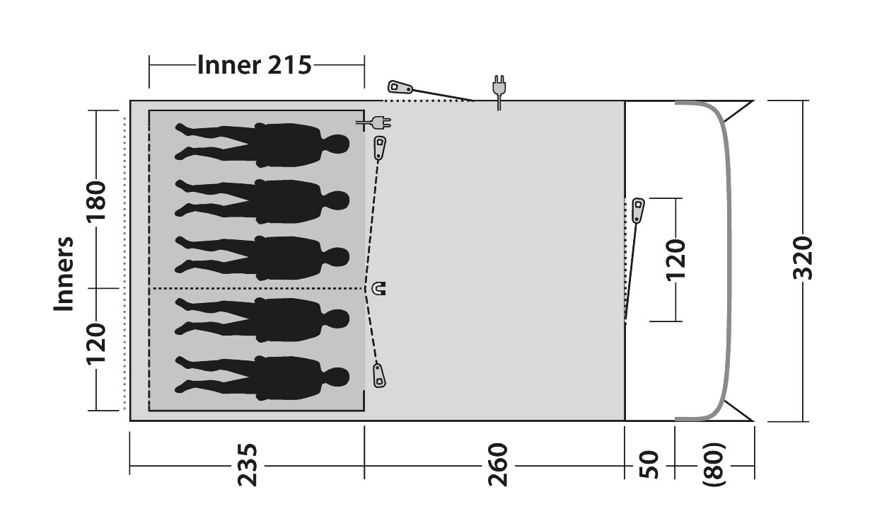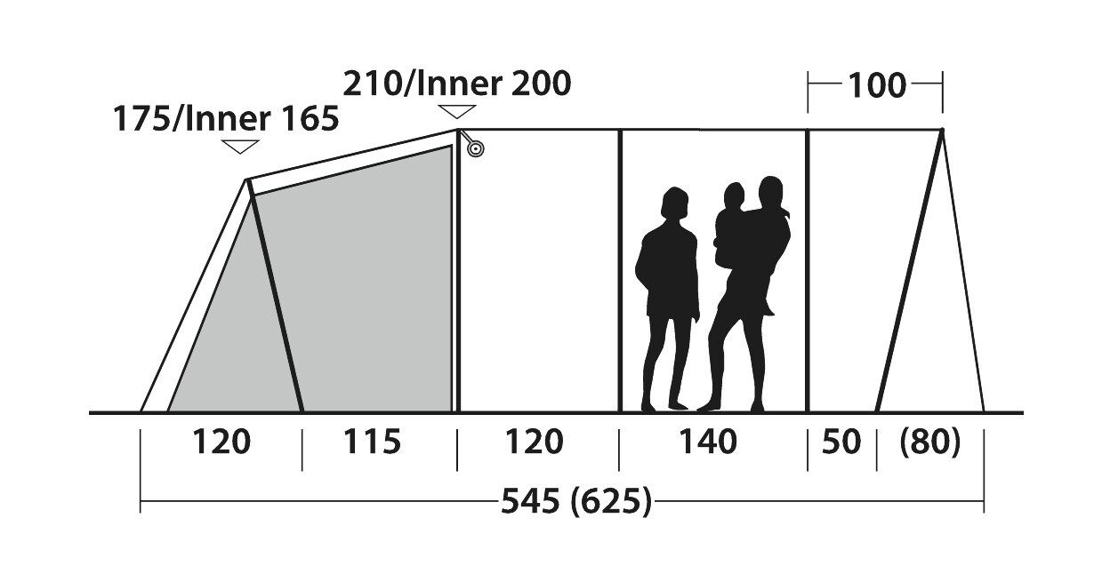 | Innenzeltmaterial: | 100% atmungsaktives Polyester, verdunkelte Premier Bedrooms |