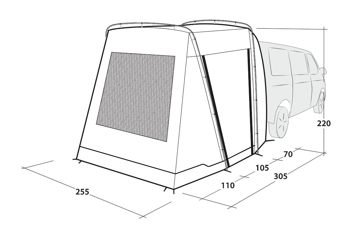 Das Outwell Desert Van Vorzelt bietet mit seinem vielseitigem Wohnraum bei geringem Packmaß und Gewicht einen perfekten Ort zum Essen, Kochen oder gemütlich Zusammensitzen. Gefertigt aus robustem Outtex® 3000 Select CARE Polyester mit einer Wassersäule von 3.000 mm und 30+ UV-Schutz, garantiert das Desert Van zuverlässigen Wetterschutz und Langlebigkeit. Große Mesh-Fenster sorgen für optimale Belüftung, während das Vehicle Attachment System einen schnellen und unkomplizierten Aufbau ermöglicht. Es ist optimal abgestimmt auf Fahrzeuge wie den T5/T6 und ähnliche Modelle mit einer Anbauhöhe von 175-205 cm. Dieses feine Anbauzelt kann sowohl am Heck (auch für Flügeltüren passend) als auch seitlich angebaut werden. Alle Türen sind schließbar – somit kann das Zelt auch alleine am Stellplatz bleiben.