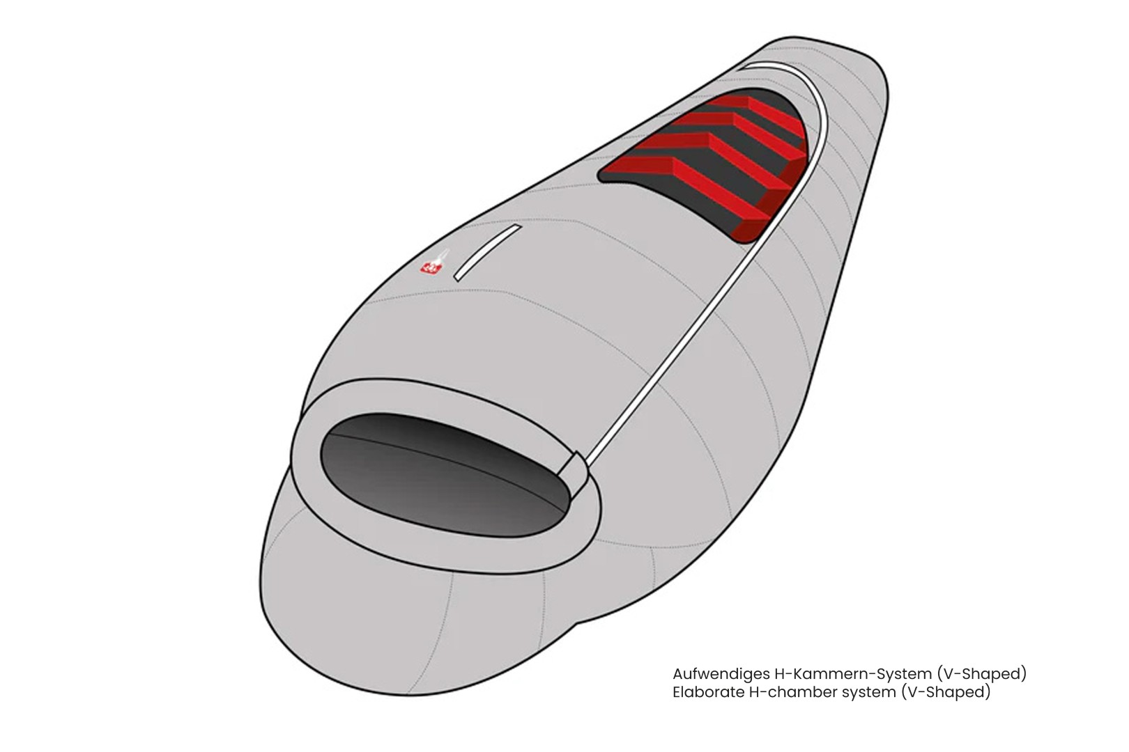 - Fußbelüftungssystem: Durch den innovativen Reißverschlussverlauf können die Füße bequem auf der Oberseite des Schlafsacks abgelegt werden und überschüssige Wärme entweichen