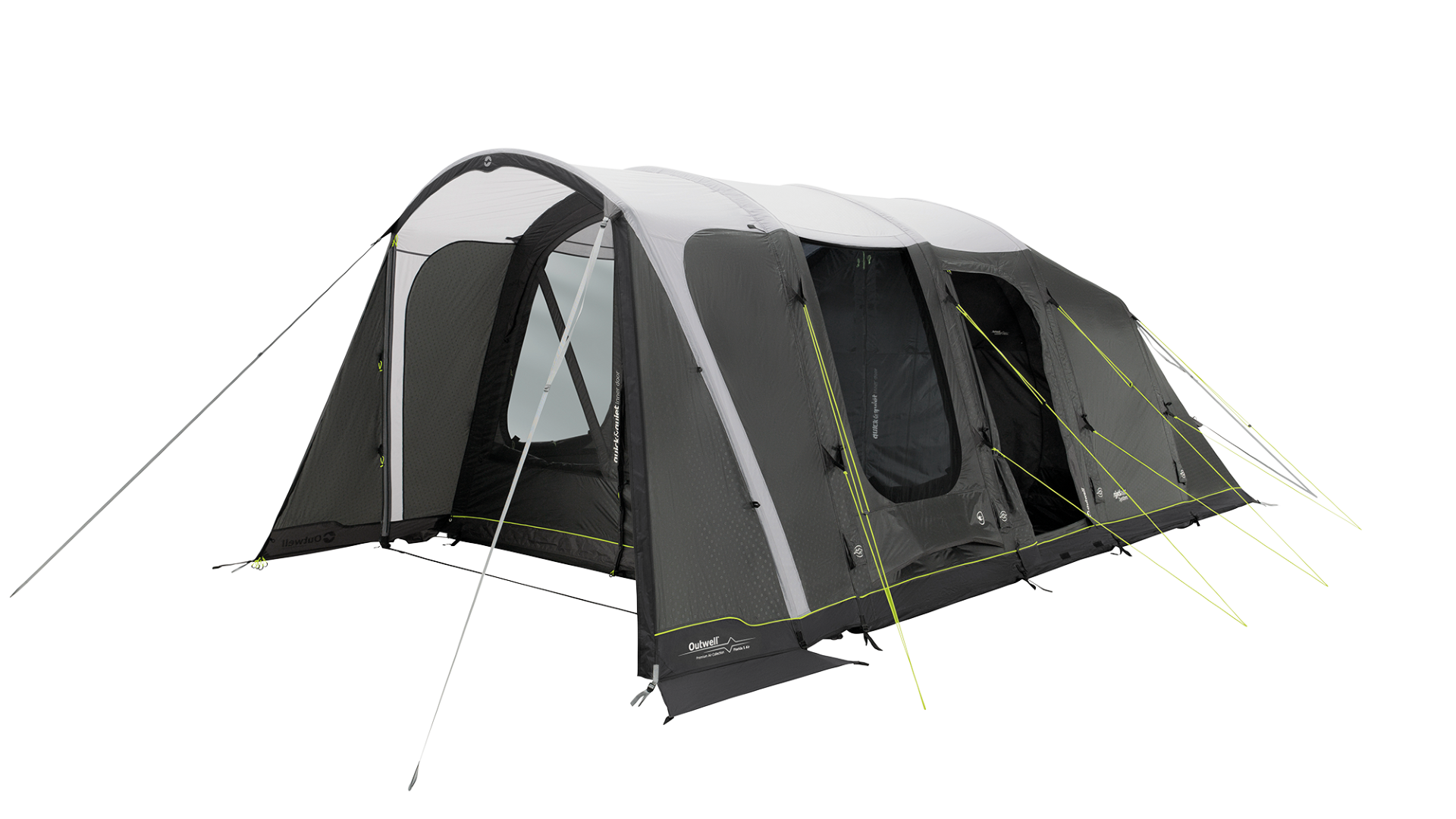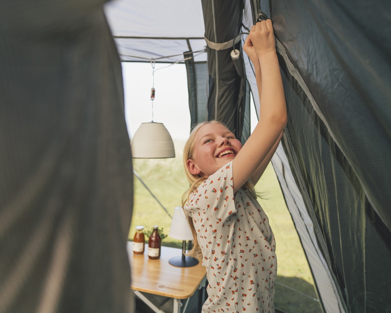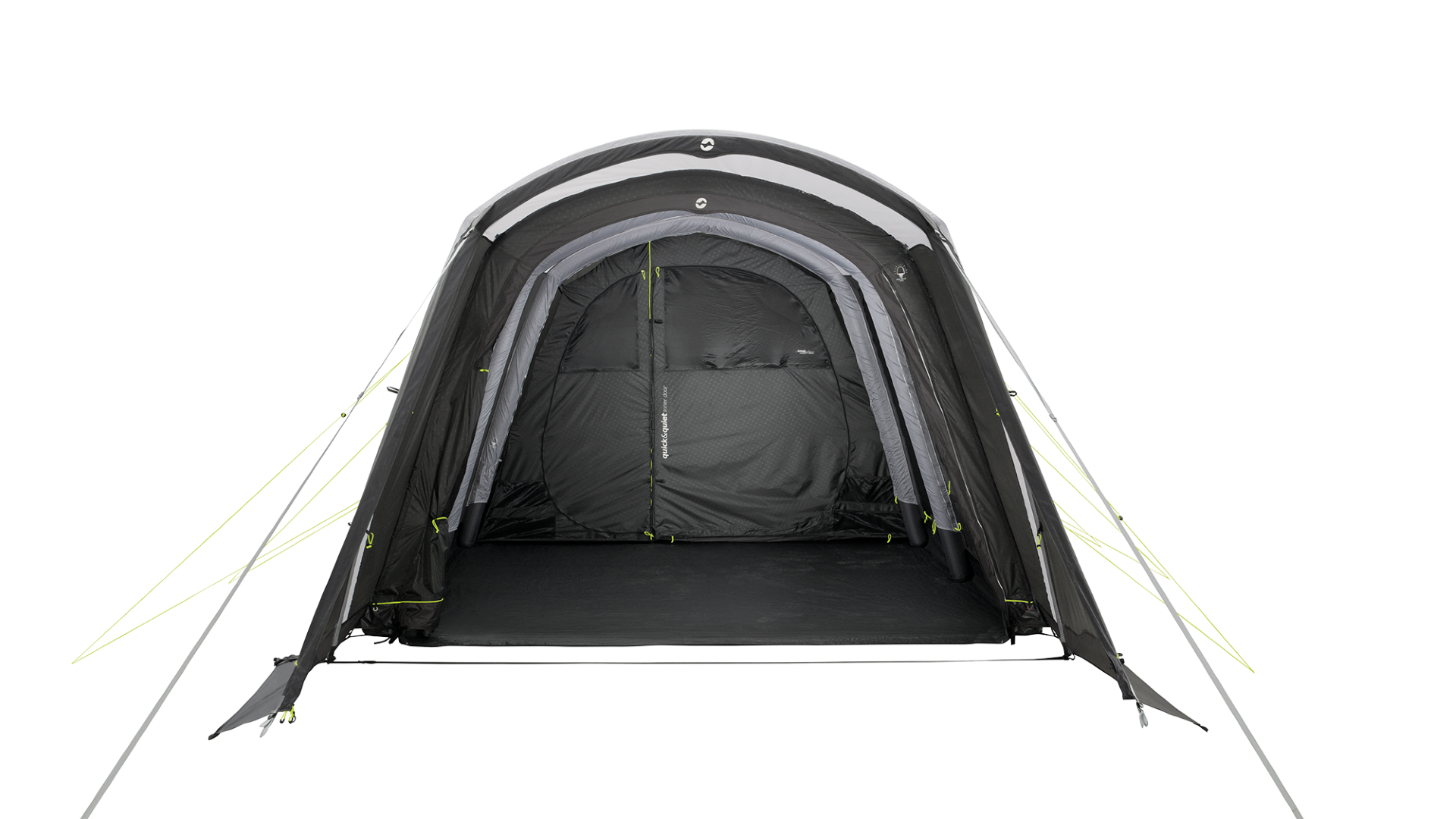 - Outwell Easy Access System: Haupttüre öffnet zur Seite, Boden lässt sich eben auslegen, sodass ein sicherer Zugang ohne Stolperfalle gegeben ist