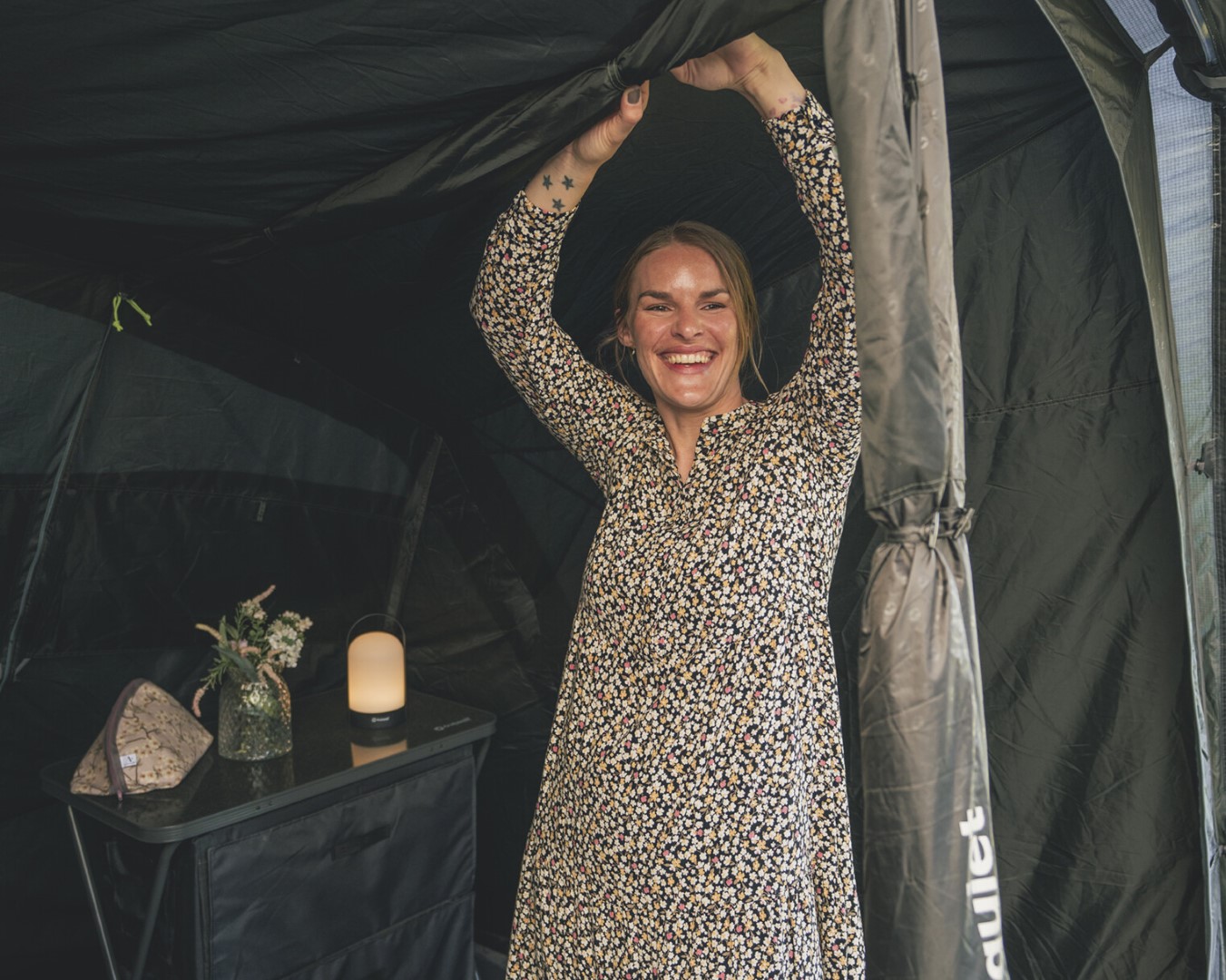 - Zip-up Vorhang mit cleveren Reißverschlusssystem, das sich flexibel öffnen und schließen lässt, je nachdem wie viel Tageslicht im Zelt gewünscht wird
