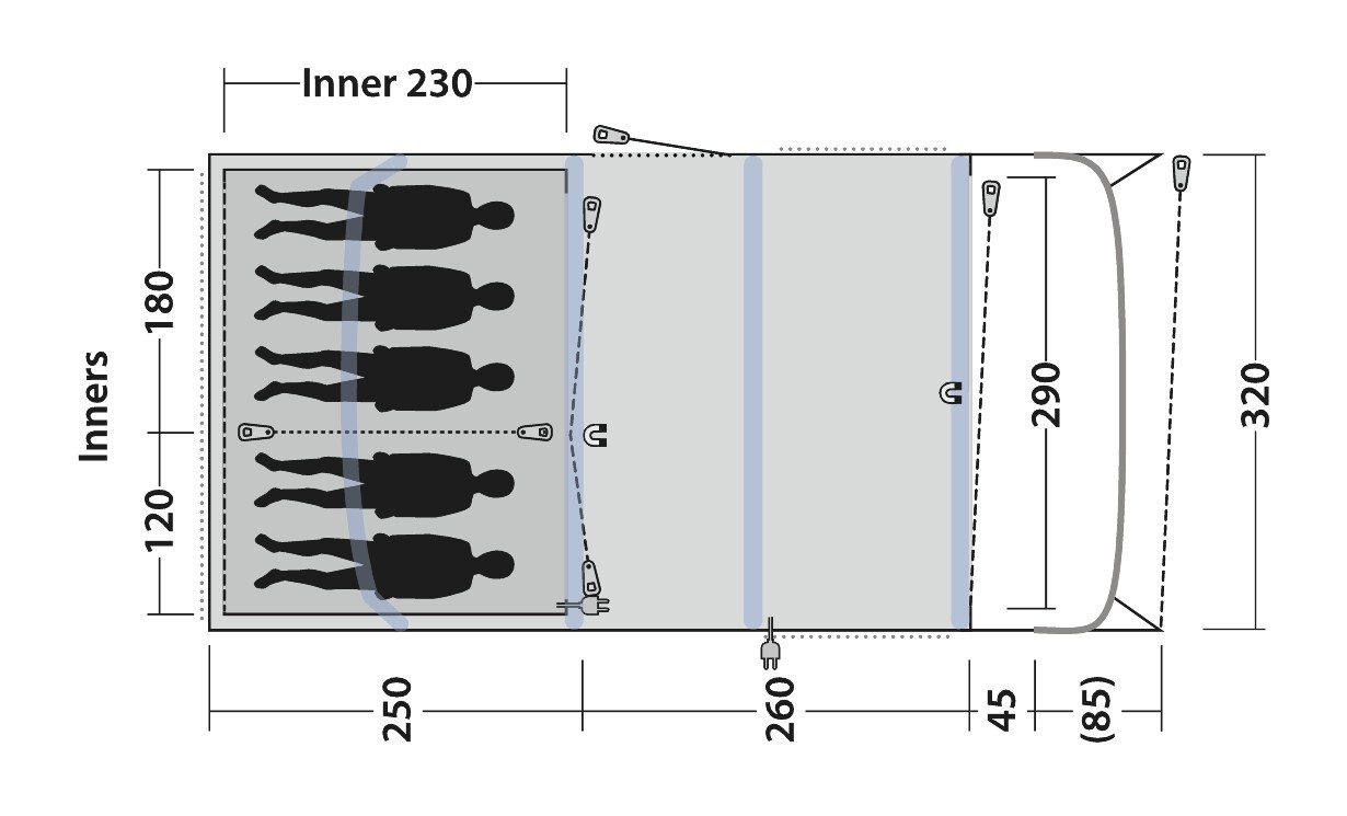 - Outwell Dark Inners: speziell abgedunkeltes Innenzelt für mehr Schlafkomfort am Morgen