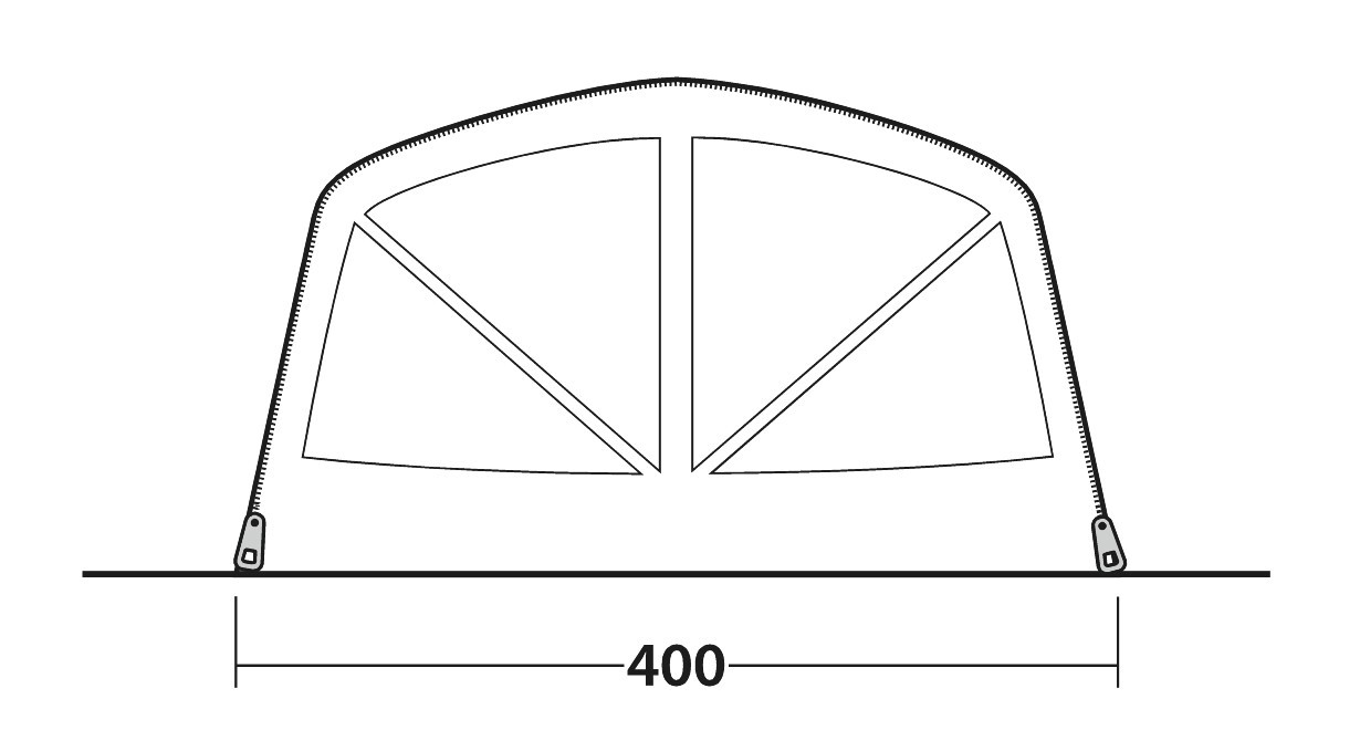 - NEU 2026: Outwell Light System: integriertes Licht am Bogen vor der Schlafkabine, welches mit USB-C Anschluss durch jede beliebige Powerbank (nicht inkludiert) betrieben werden kann.