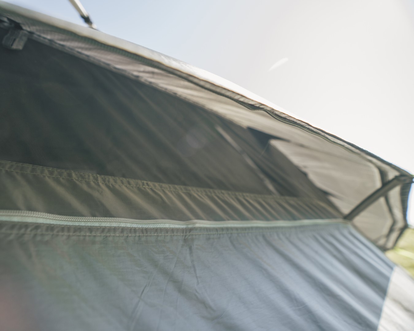 - Zip-up Vorhang mit cleveren Reißverschlusssystem, das sich flexibel öffnen und schließen lässt, je nachdem wie viel Tageslicht im Zelt gewünscht wird
