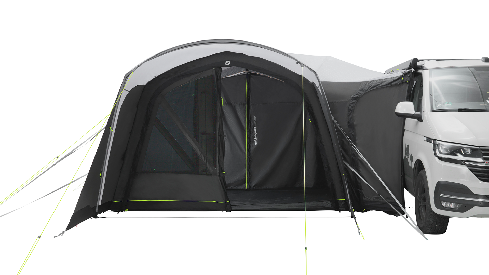 - Drive Away Ready System: einfache Möglichkeit, ein freistehendes Busvorzelt an einem Fahrzeug anzuschließen und zu trennen, ohne dass ein Adapter-Set erforderlich ist. Am Zelt ist dazu die Schleuse mit Reißverschluss angebracht.