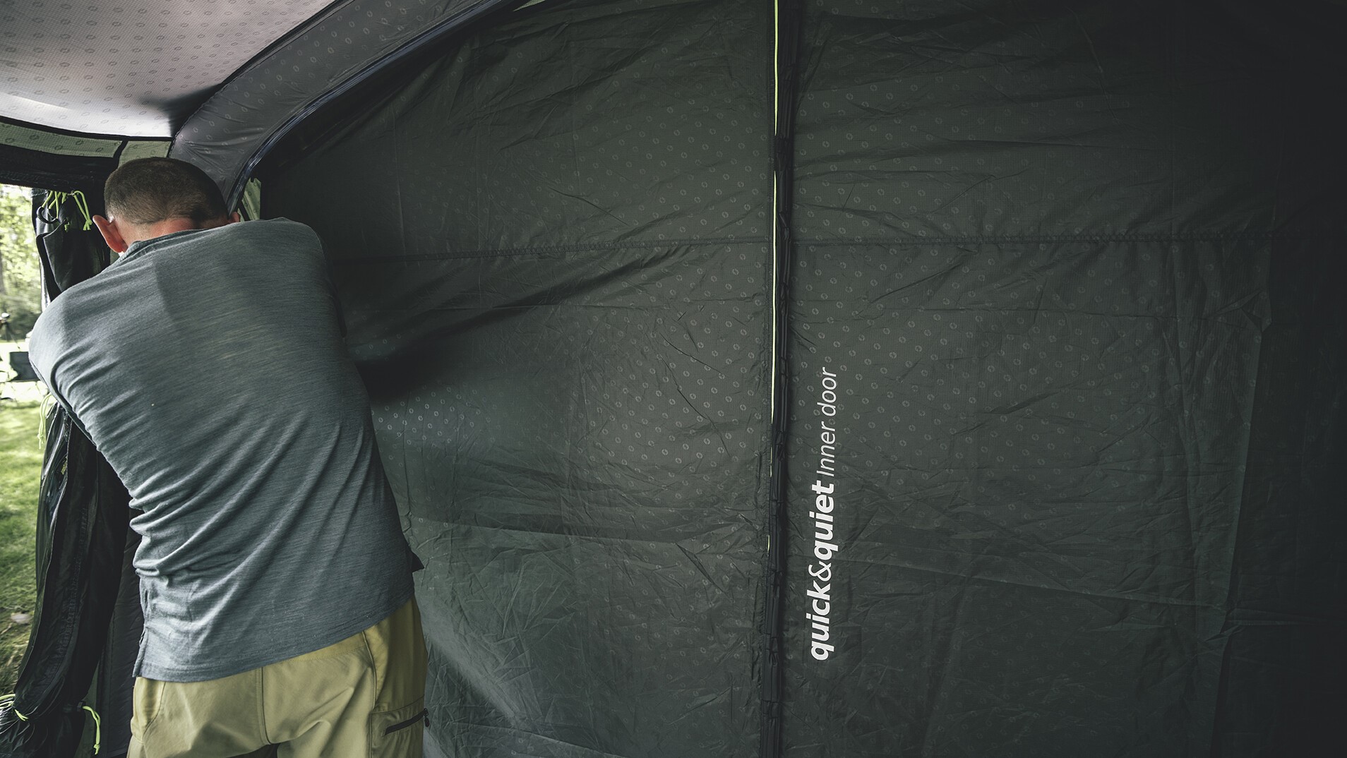 - Zip-up Vorhang mit cleverem Reißverschlusssystem, das sich flexibel öffnen und schließen lässt, je nachdem wie viel Tageslicht im Zelt gewünscht wird.