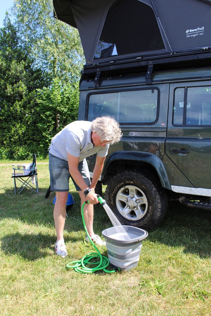 Das wiederaufladbare Spülsystem von Eurotrail ist die ideale Lösung, um Auto, Wohnmobil, Fahrrad oder Campingausrüstung schnell und mühelos zu reinigen.