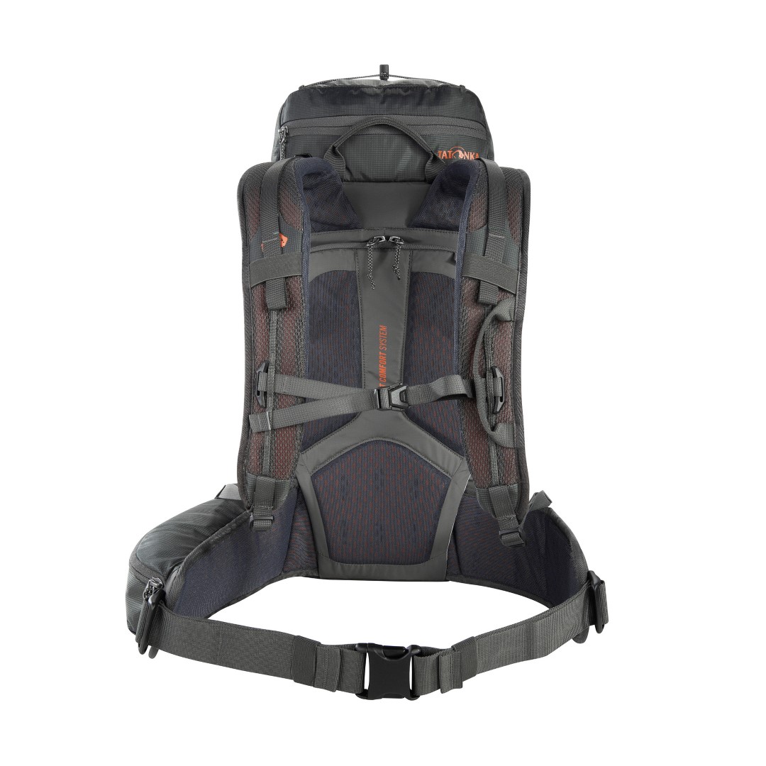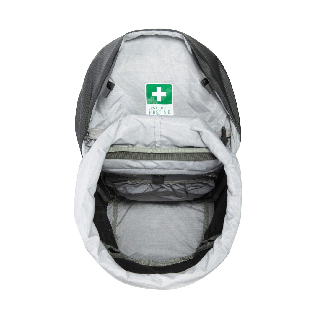 Für einen übersichtlichen Zugriff auf die Ausrüstung im Hauptfach kann der Rucksack mit einem Rundum-Reißverschluss auf der Rückseite komplett geöffnet werden! Das ist zudem praktisch, weil man das Tragesystem nicht auf die Erde oder auf Wintertouren in den Schnee legen muss.