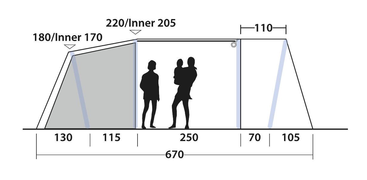 - Outwell Dark Inners: speziell abgedunkeltes Innenzelt für mehr Schlafkomfort am Morgen