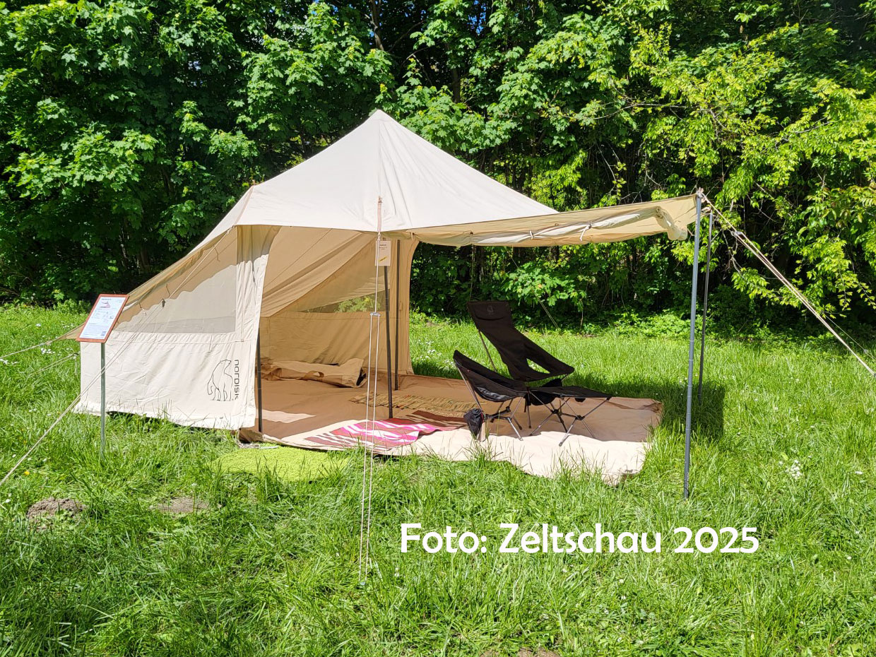 | Außenzeltmaterial: | Technische Baumwolle (TC 65% Polyester, 35% Cotton); schweres Zelttuchgewebe mit atmungsaktiver Beschichtung |