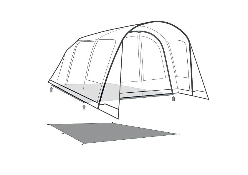 Diese praktische Unterlage hält Ihren Zeltfußboden sauber und vermeidet Abrieb. Außerdem isoliert sie zusätzlich gegen die Bodenkälte. Die Unterlage muss vom Zelt vollständig bedeckt sein, damit kein Regenwasser unter das Zelt geführt wird.