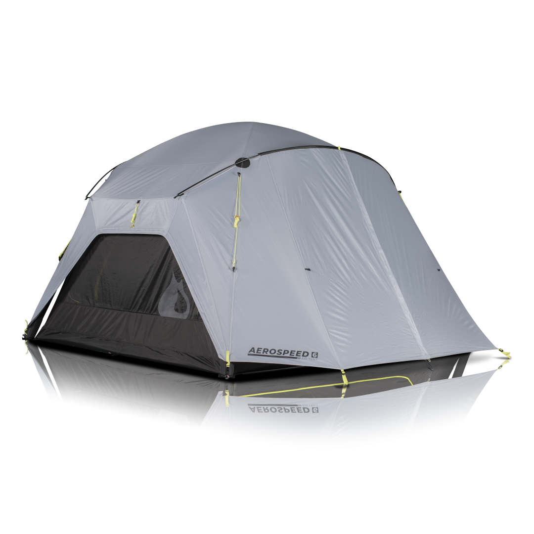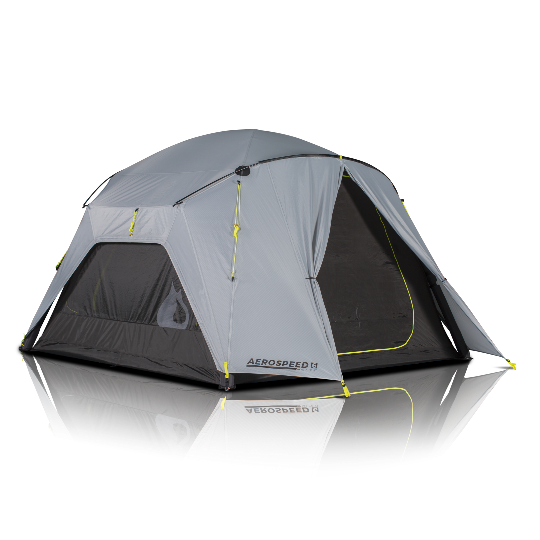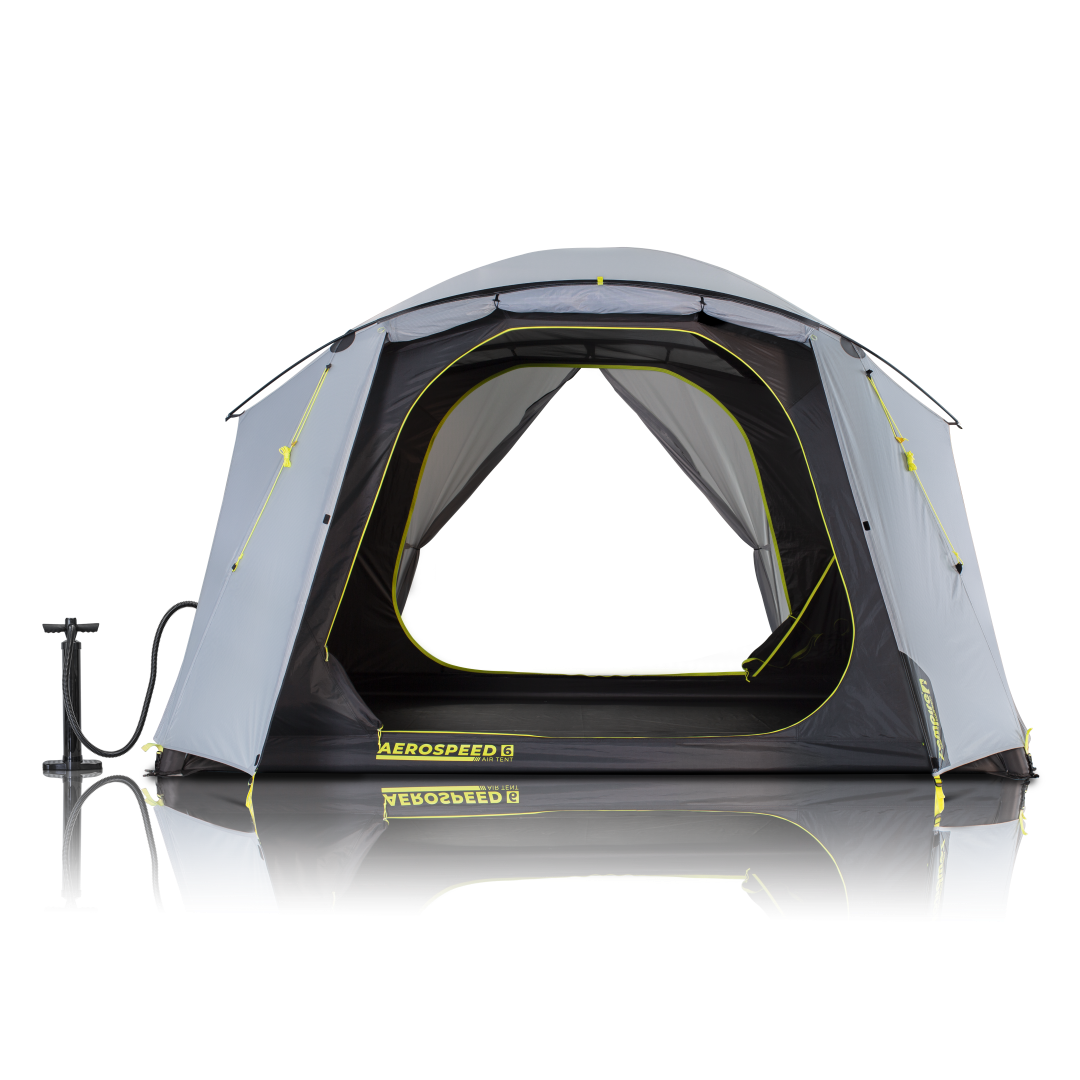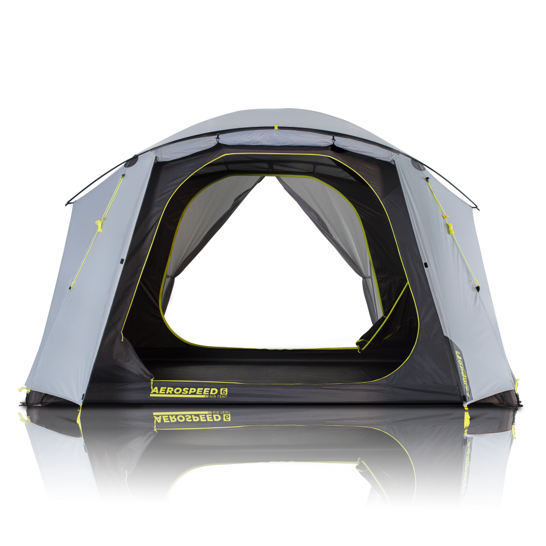 Das Aerospeed 6 ist ein innovatives Air-Zelt, das auch bei starkem Wind sicher steht und dank nahezu senkrechter Wände besonders viel Platz und Kopffreiheit im Innenraum bietet. Es überzeugt durch sein stabiles Luftsystem in Verbindung mit zusätzlichen Aluminiumstangen.