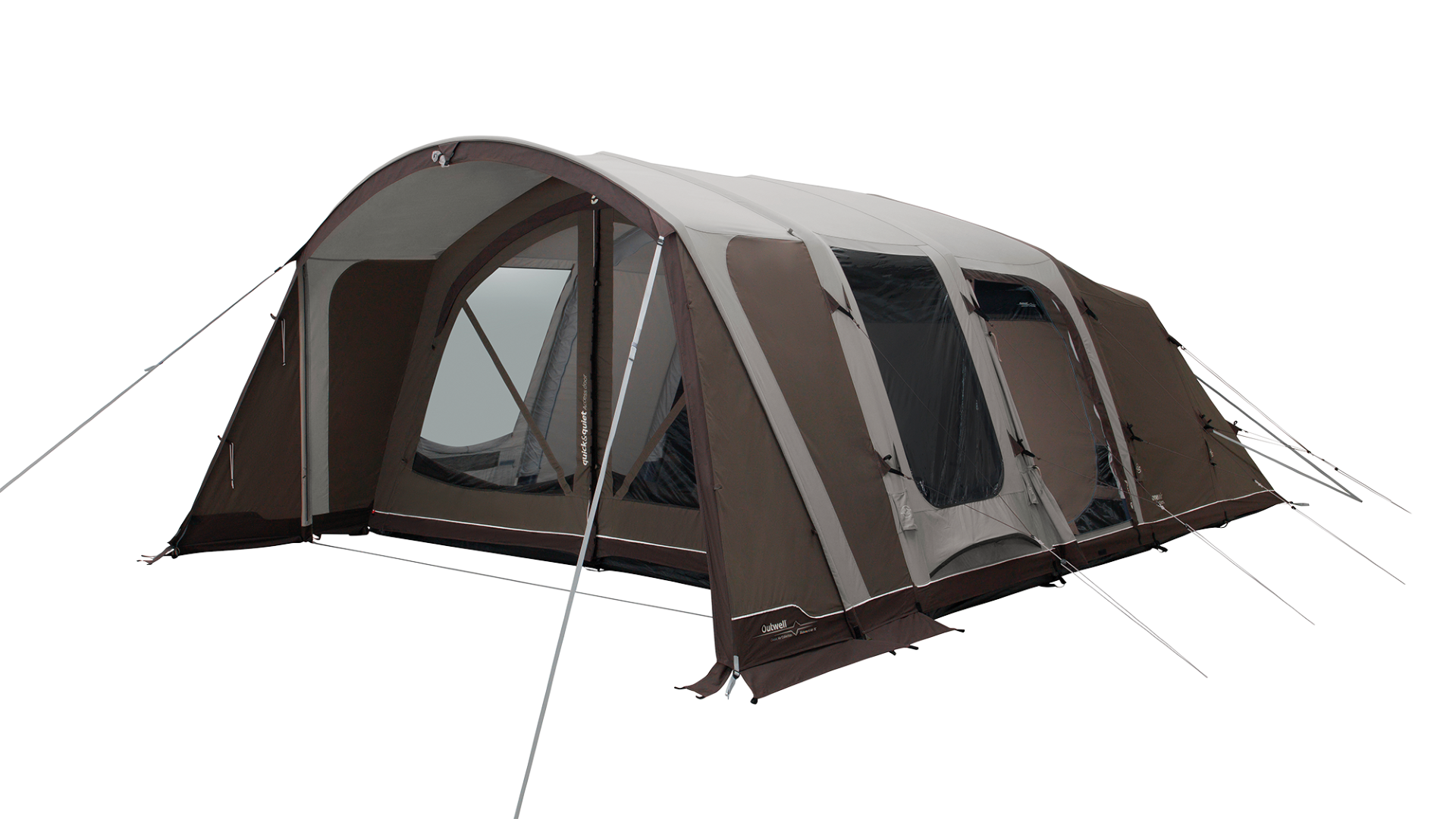 - Outwell Quick & Quiet Access: in Drei-Zonen-Zelten ist die Verbindungstüre mit Magnetstreifen zum raschen und leisen Verschluss ausgestattet. Zusätzlich ist die Türe auch mit Reißverschluss und mit Fenstern mit abzippbaren Vorhängen ausgestattet.
