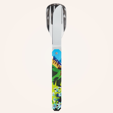 Praktisches Besteckset im coolen Design "Bergsommer": Sehnsucht nach frischer Luft? Die Berglandschaft am magnetisches Akinod-Besteckset ist ebenso außergewöhnlich wie erholsam! Einfach zu transportieren, begleitet es bei täglichen Abenteuern, ob urban oder in Kiefernwäldern!