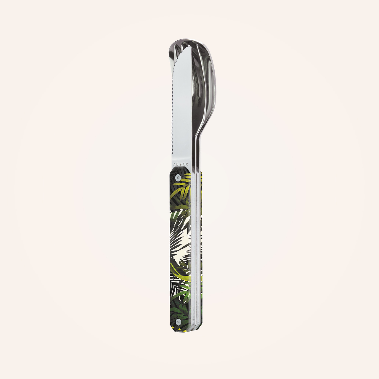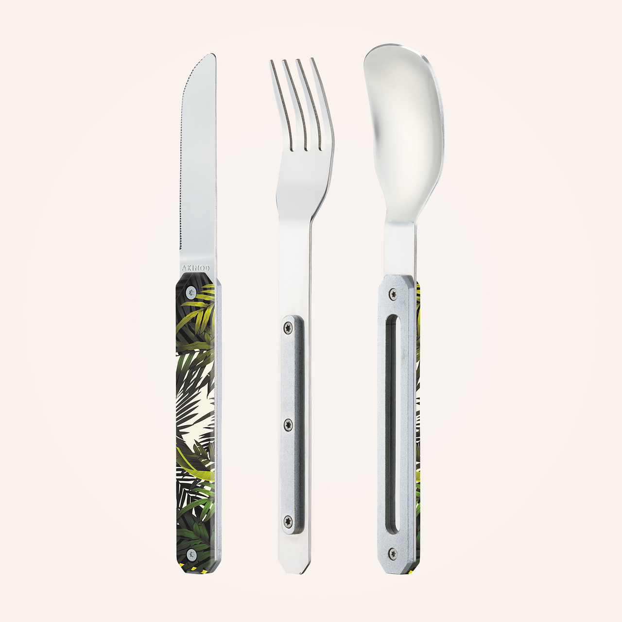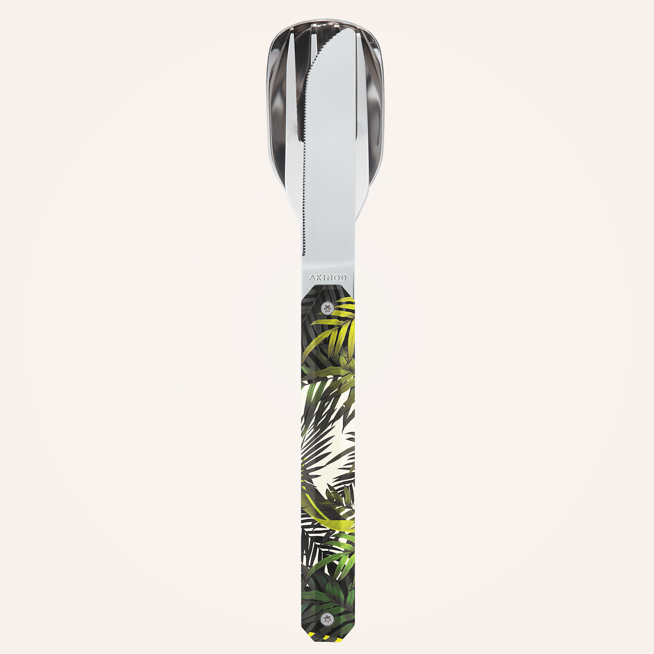 Praktisches Besteckset im coolen Design "Jungle": Ob erfahrener Entdecker*in oder Liebhaber*n von Naturspaziergängen, dieses Akinod-Besteck mit seinen wilden Aspekten wird alle Mahlzeiten in ein echtes Abenteuer verwandeln!