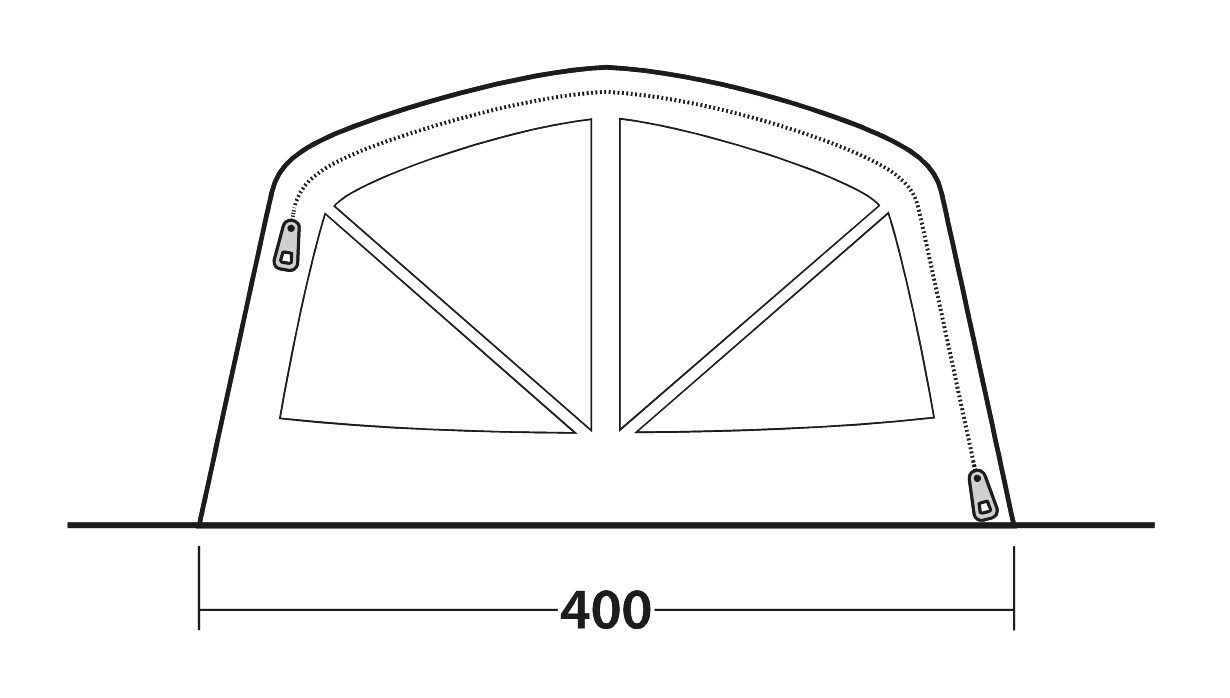 - NEU 2026: Outwell Light System: integriertes Licht am Bogen vor der Schlafkabine, welches mit USB-C Anschluss durch jede beliebige Powerbank (nicht inkludiert) betrieben werden kann.