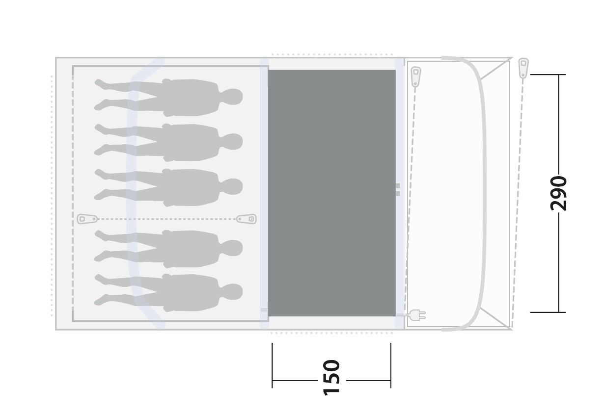 Der Teppich ist passgenau auf den Wohnbereich des Zeltes zugeschnitten und als optionales Extra erhältlich, um auch beim Camping für die von daheim gewohnte Behaglichkeit zu sorgen. Das neue Material ist angenehm weich und isoliert.