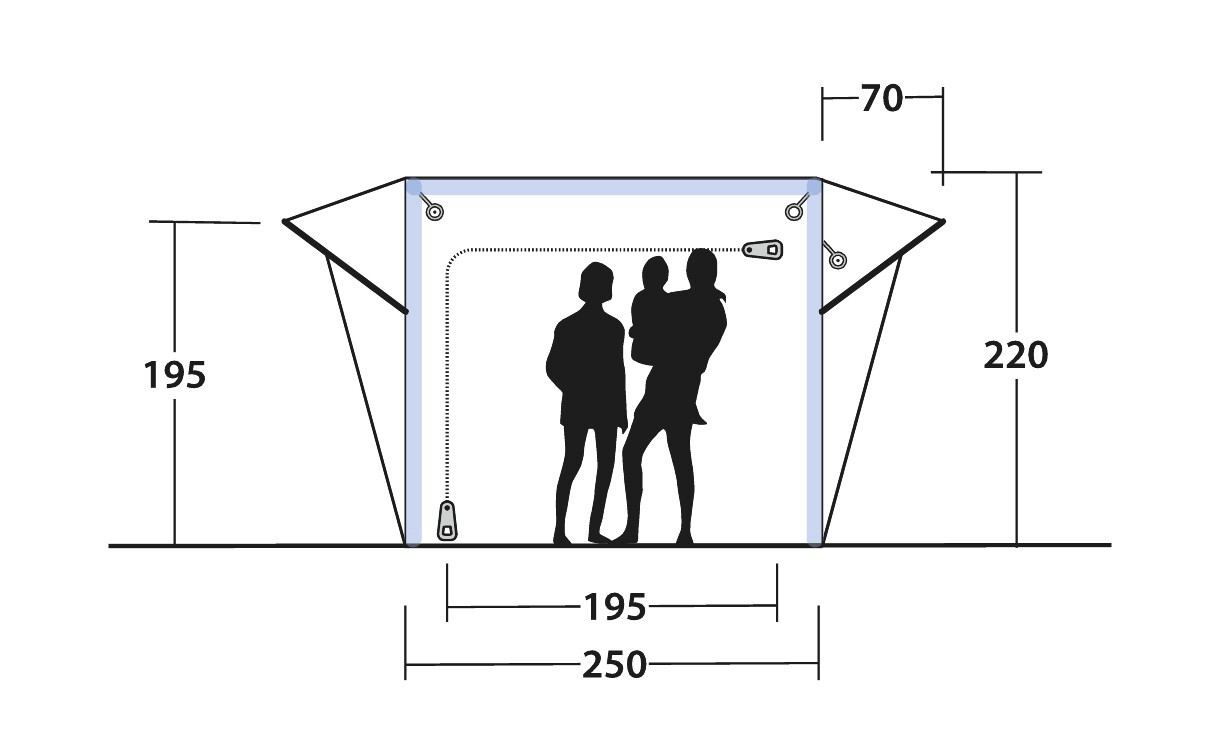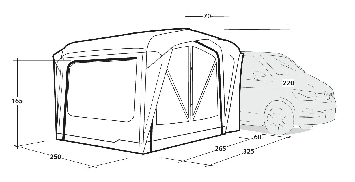 Das Cross PowerAir Vorzelt verbindet sich sehr einfach mit Fahrzeugen, die eine Höhe zwischen 175 und 200 cm haben und bietet einen nahtlosen Übergang zwischen Auto und Wohnraum – ideal für Familien und entspannte Campingurlaube. Der großzügige Innenraum mit vorgeformten PowerAir-Schläuchen sorgt für hervorragende Stehhöhe und ein wohliges Raumgefühl. Das Outwell Light System (Stromquelle nicht enthalten) schafft eine angenehme, indirekte Beleuchtung im gesamten Vorzelt. Auf Wunsch kann auch eine abgedunkelte Schlafkabine Sleep Annexe) eingehängt werden, so dass dem perfekten Schlaf nichts mehr im Wege steht. Dank der beiden seitlichen Regenvordächern und des zuverlässigen Awning Sealing Systems kann das Vorzelt bei jedem Wetter geschützt begangen werden. Es wird parallel zum Fahrzeug angebaut und bietet so eine perfekte Raumausnutzung bei minimaler Stellplatzanforderung. Das Cross PowerAir ist aus Outtex® 6000 Express Ripstop Polyester - dem derzeit hochwertigsten Polyestergewebe, dass der Hersteller Outwell anzubieten hat. Ein gemütlicher, geschützter Rückzugsort – perfekt als Basislager für jede Reise.