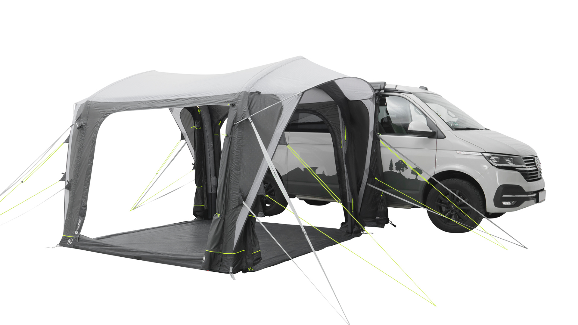 - Drive Away Ready System: einfache Möglichkeit, ein freistehendes Busvorzelt an einem Fahrzeug anzuschließen und zu trennen, ohne dass ein Adapter-Set erforderlich ist. Am Zelt ist dazu die Schleuse mit Reißverschluss angebracht.