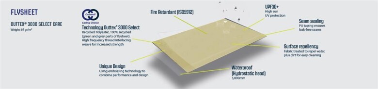 | Außenzeltmaterial: | Outtex® 3000 Select CARE, 100% recycletes Polyester |