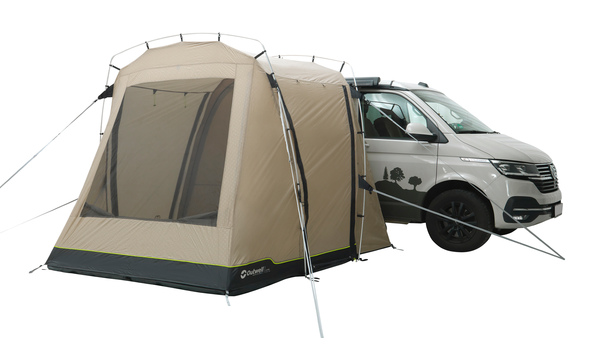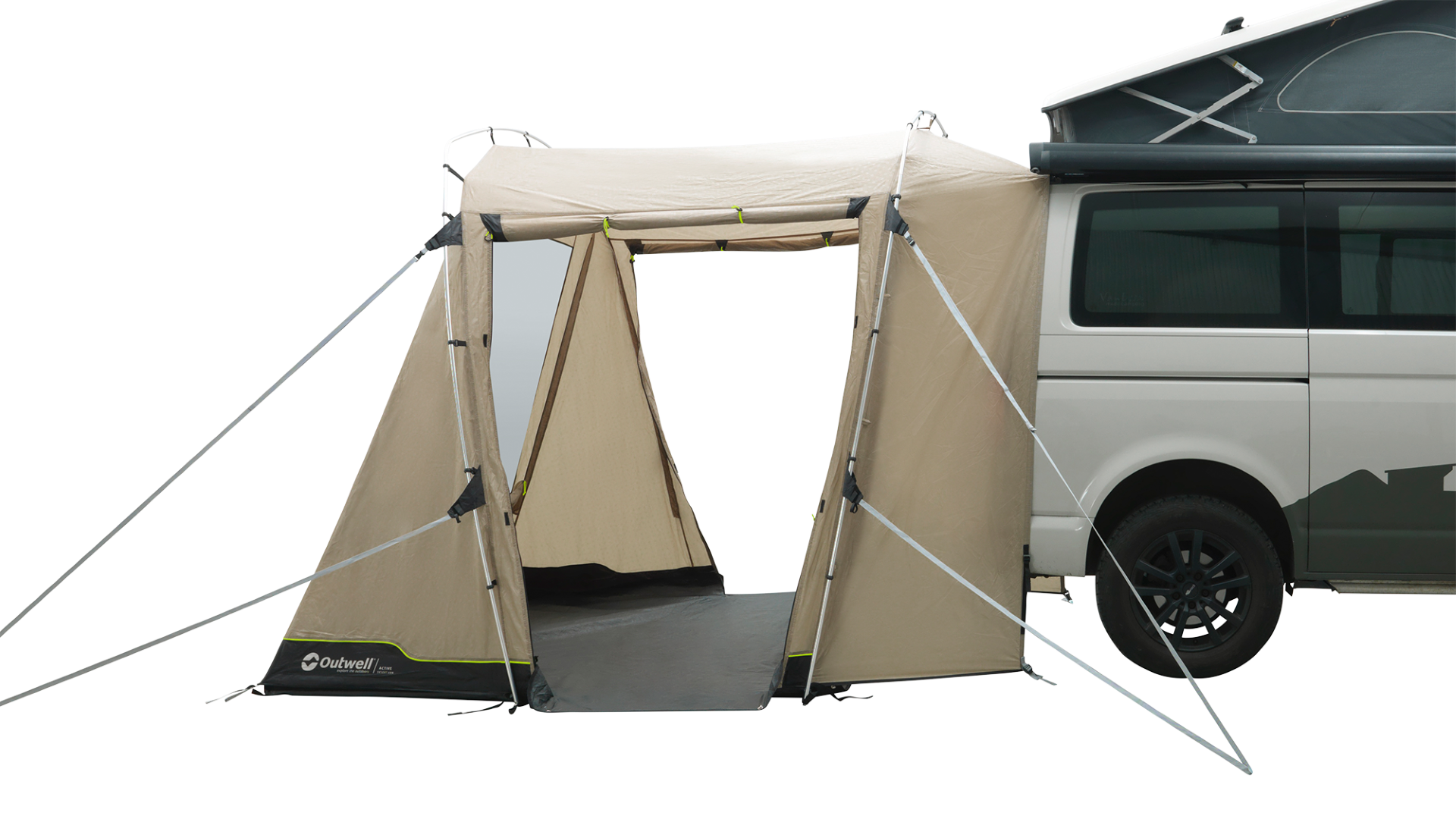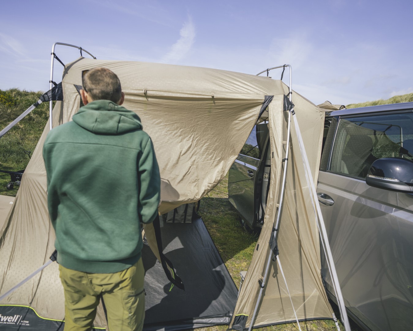 Das Outwell Desert Van Vorzelt bietet mit seinem vielseitigem Wohnraum bei geringem Packmaß und Gewicht einen perfekten Ort zum Essen, Kochen oder gemütlich Zusammensitzen. Gefertigt aus robustem Outtex® 3000 Select CARE Polyester mit einer Wassersäule von 3.000 mm und 30+ UV-Schutz, garantiert das Desert Van zuverlässigen Wetterschutz und Langlebigkeit. Große Mesh-Fenster sorgen für optimale Belüftung, während das Vehicle Attachment System einen schnellen und unkomplizierten Aufbau ermöglicht. Es ist optimal abgestimmt auf Fahrzeuge wie den T5/T6 und ähnliche Modelle mit einer Anbauhöhe von 175-205 cm. Dieses feine Anbauzelt kann sowohl am Heck (auch für Flügeltüren passend) als auch seitlich angebaut werden. Alle Türen sind schließbar – somit kann das Zelt auch alleine am Stellplatz bleiben.