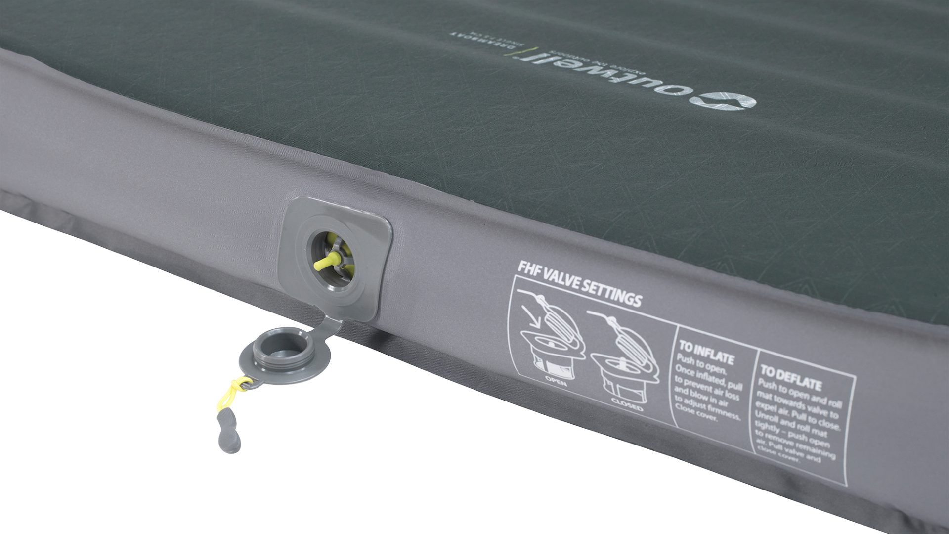 Selbstaufblasbare Liegematte, bei der Komfort und Qualität stimmen und der Name Programm ist: eine Matte zum Träumen! Die Matte ist mit dem Outwell® FHF-Ventil (Flat High-Flow Valve) ausgestattet – einem flachen Ventil, das sowohl beim Aufblasen als auch beim Ablassen der Luft einen hohen Luftstrom ermöglicht. Die Seitenwände aus Textil biegen sich unter Druck nicht durch, wodurch sich das Aufblasen einfacher gestaltet, weil weniger Luft zugeführt werden muss.