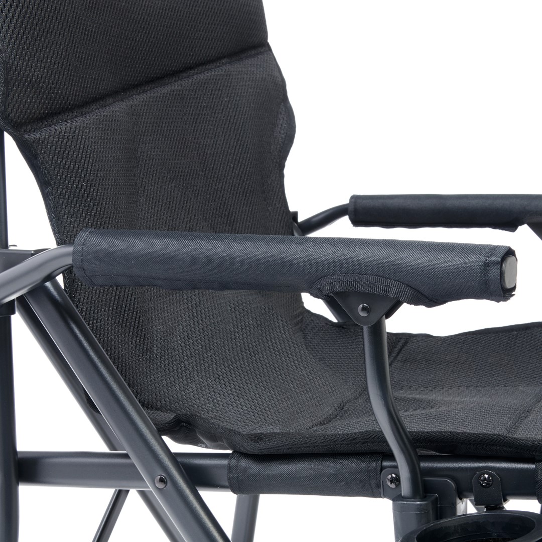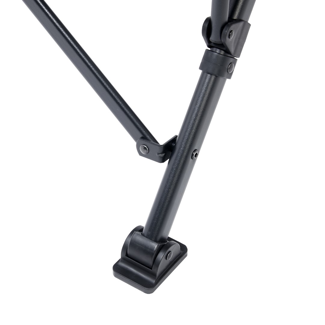 Das atmungsaktive Air Mesh Comfort+ Material sorgt für optimale Belüftung und wärmeregulierenden Komfort. Die stabilen, breiten Füße verhindern ein Einsinken auf weichem Untergrund, während das robuste Stahlgestänge eine Traglast von bis zu 120 kg gewährleistet.