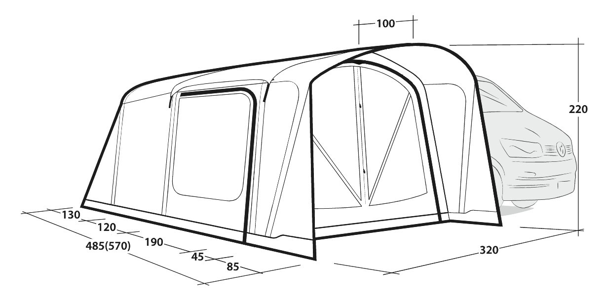 - Drive Away Ready System: einfache Möglichkeit, ein freistehendes Busvorzelt an einem Fahrzeug anzuschließen und zu trennen, ohne dass ein Adapter-Set erforderlich ist. Am Zelt ist dazu die Schleuse mit Reißverschluss angebracht.