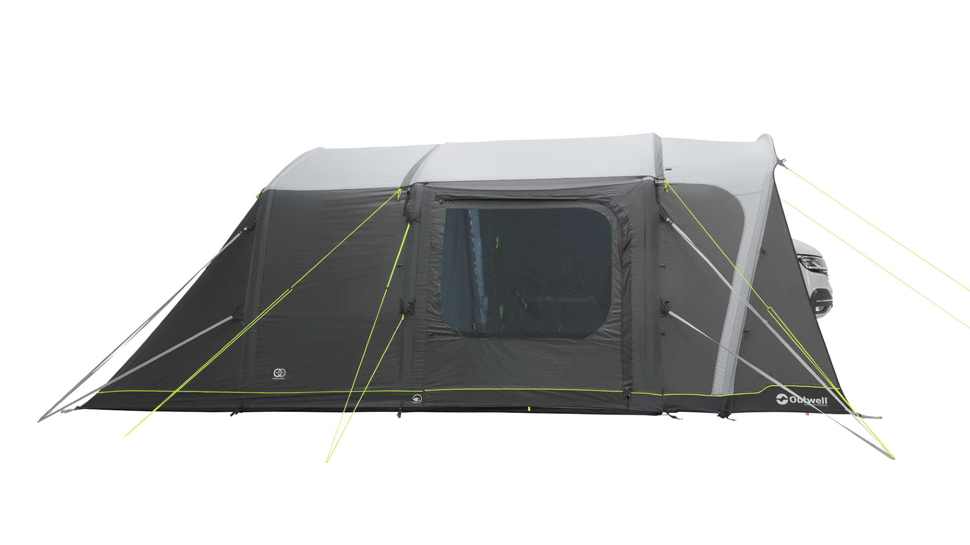 Das Jones L PowerAir ist das perfekte Autoanbauzelt für alle Campingfreunde, die nicht nur täglich ihren Stellplatz wechseln, sondern auch gerne ein paar Tage an einem Ort genießen und dabei der ganzen Familie einen Rückzugsort zum Essen, Spielen oder auch Schlafen bieten wollen. Dabei verwendet Outwell das derzeit hochwertigste Ripstop-Polyester mit 6.000mm (!) Wassersäule und packt alles an Features in dieses Modell, was das moderne Campingzelt heute bieten kann: integrierte Beleuchtung, Qick & Quiet Access – Türe, Hook-Track – System und vieles andere mehr. Willkommen in der Luxusklasse des mobilen Wohnens!