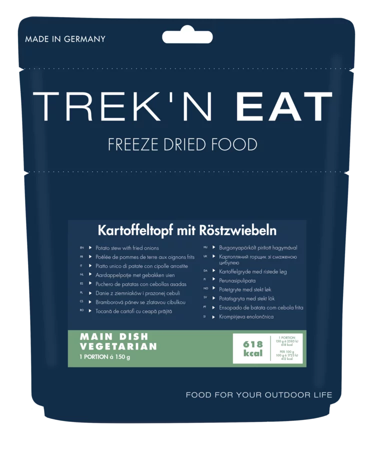 Wenn der Appetit auf ein herzhaftes vegetarisches Gericht groß ist, sollte der Kartoffeltopf mit Röstzwiebeln nicht im Gepäck fehlen. Knackige Röstzwiebeln geben diesem Gericht die besondere Würze. Kartoffeln und Soja sorgen dafür, dass neben dem deftigen Geschmack auch der Hunger besiegt wird. Wenn es also herzhaft und deftig in der Outdoor-Küche zugehen soll, ist der Kartoffeltopf mit Röstzwiebeln ein idealer Begleiter auf allen Touren.