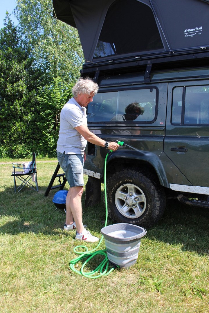 Das wiederaufladbare Spülsystem von Eurotrail ist die ideale Lösung, um Auto, Wohnmobil, Fahrrad oder Campingausrüstung schnell und mühelos zu reinigen.