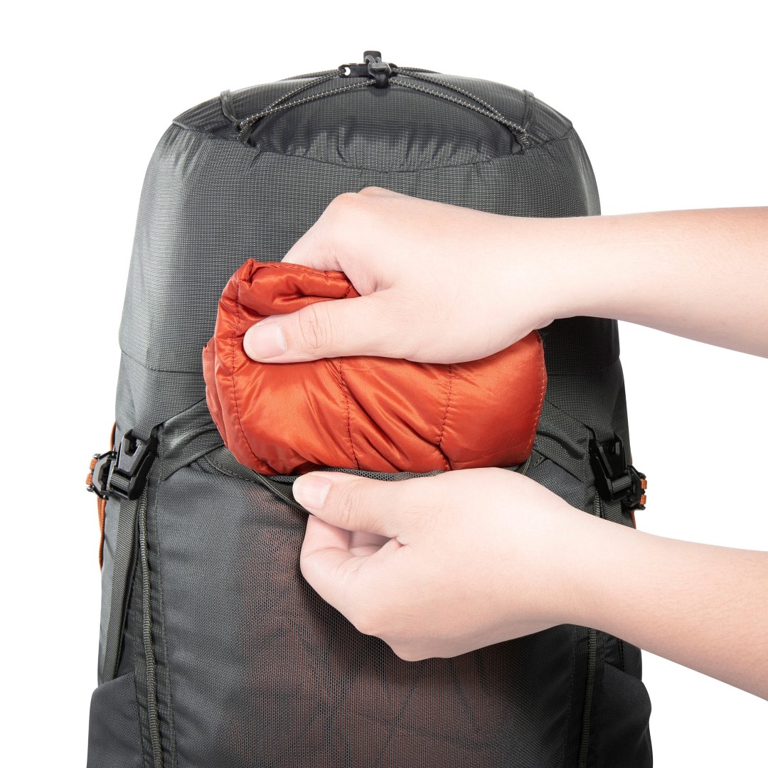 Für einen übersichtlichen Zugriff auf die Ausrüstung im Hauptfach kann der Rucksack mit einem Rundum-Reißverschluss auf der Rückseite komplett geöffnet werden! Das ist zudem praktisch, weil man das Tragesystem nicht auf die Erde oder auf Wintertouren in den Schnee legen muss.