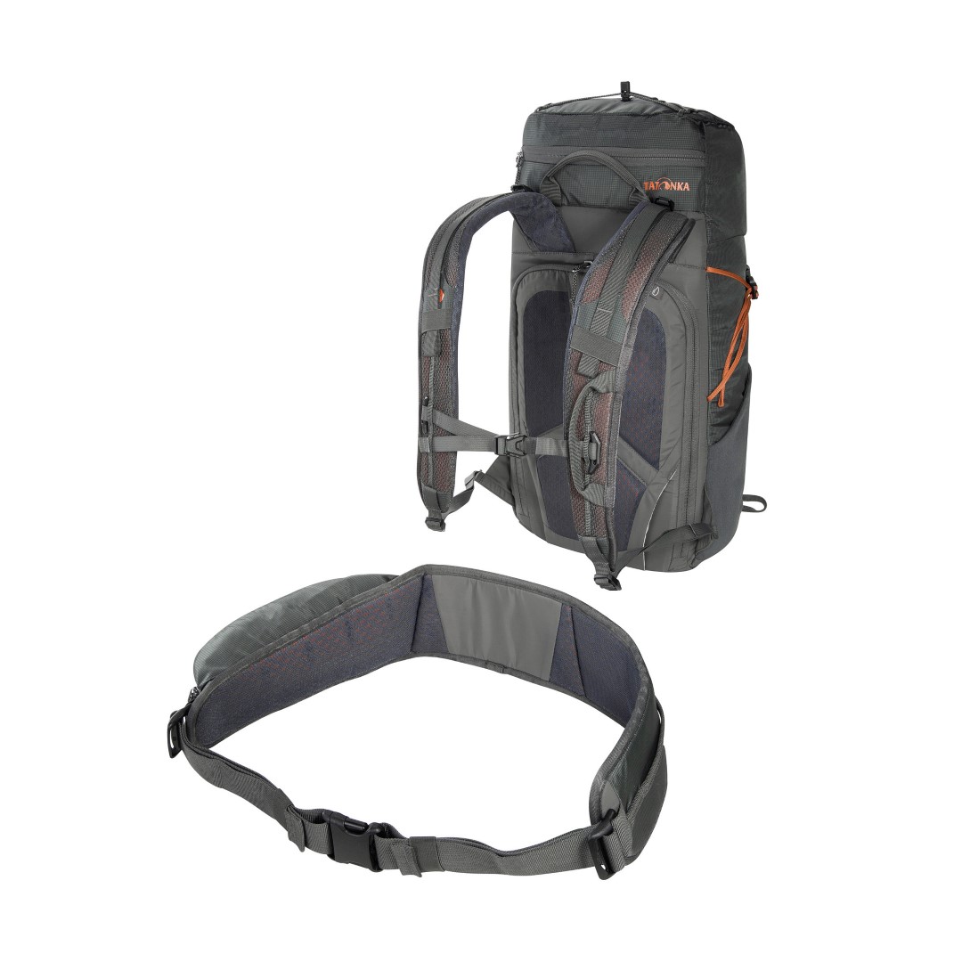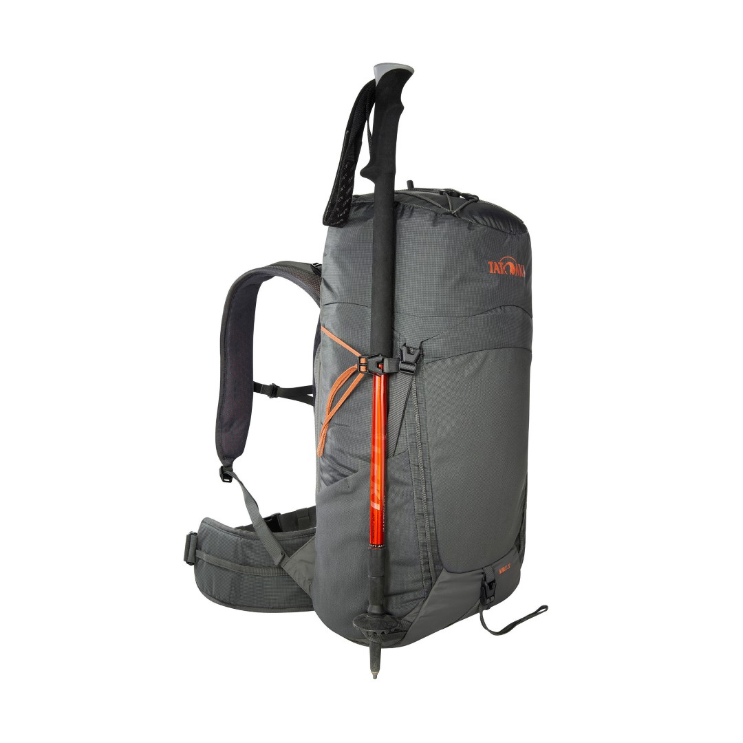 Der Norix 27 ist ein Wanderrucksack mit 27 Liter Volumen, Kontaktrücken-Tragesystem, abnehmbarem Hüftgurt und großem Zugriff ins Hauptfach von der Rückseite.