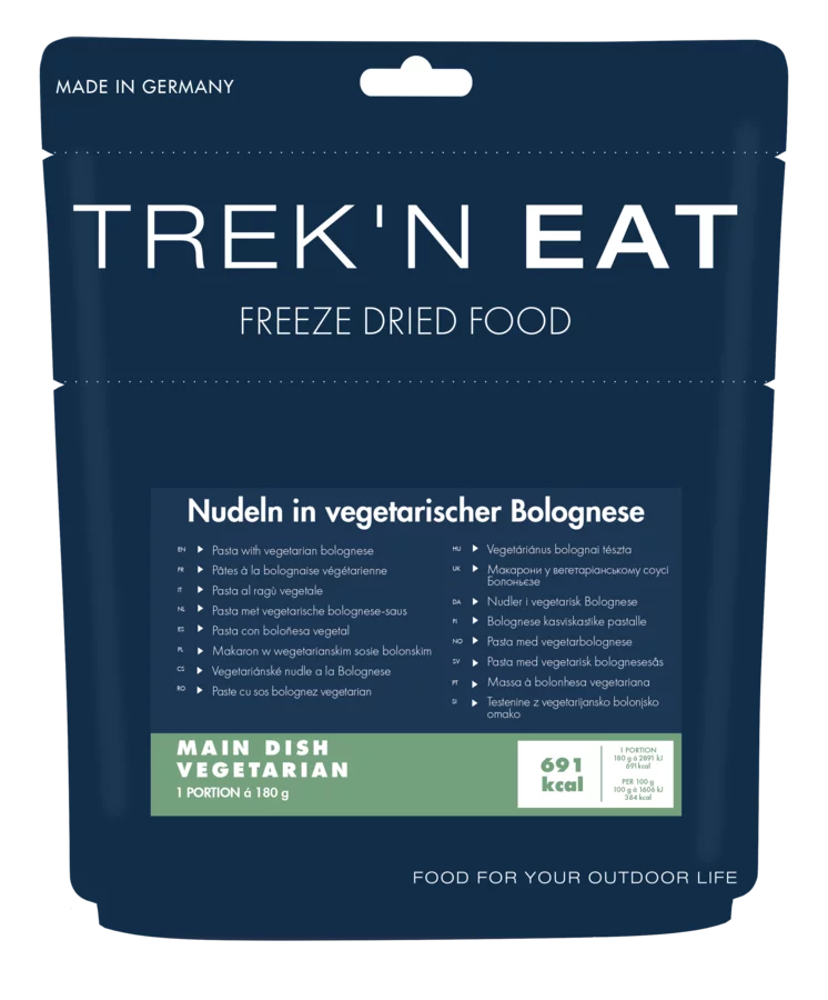 Trek´n Eat ist gefriergetrocknete Spezialnahrung, die bei Reisen, Expeditionen, auf Booten und bei Ausflügen in die Natur als Fertiggericht mit Wasser zubereitet wird. Die Zubereitung ist einfach: Packung öffnen, kochendes Wasser hinzufügen, umrühren, 8–10 Minuten ziehen lassen, und fertig ist die komplette Mahlzeit.