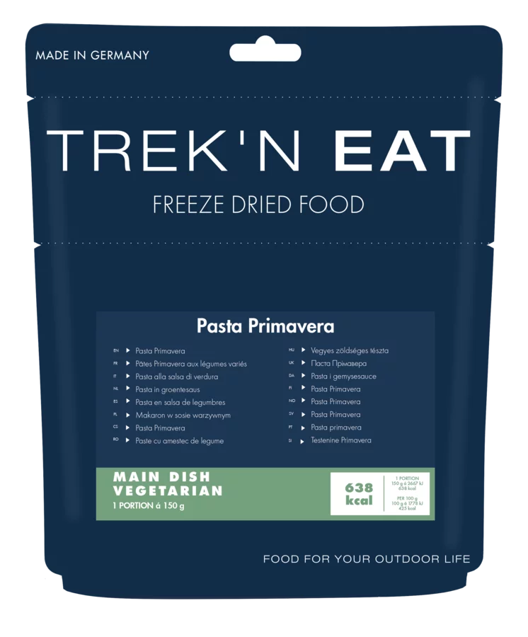 Pasta Primavera ist ein klassisches Nudelgericht, bei dem insbesondere der Mix aus buntem Gemüse das Bild auf dem Teller bestimmt. Lauch, Paprika, Mais und Broccoli in einer fein abgestimmten Soße bringen reichlich Vitamine in diese Pastavariante. Lecker abgestimmt und gesund, bringt die Pasta Primavera von Trek’n Eat Kraft in müde Glieder und füllt den leeren Magen.