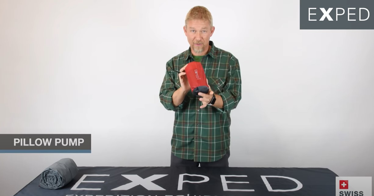 Damit lässt sich eine Matte schnell und einfach mit Händen oder einem Fuß aufblasen. Durch das Schließen der zwei robusten Flachventile verwandelt sich die Pillow Pump in ein bequemes Kissen.