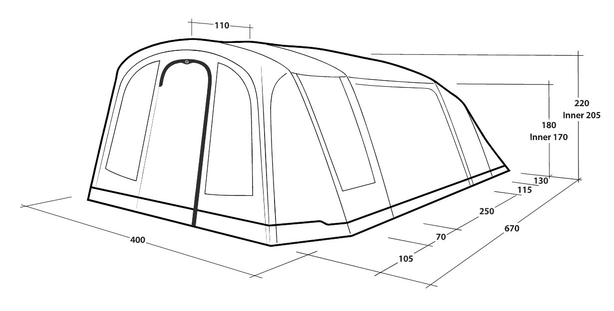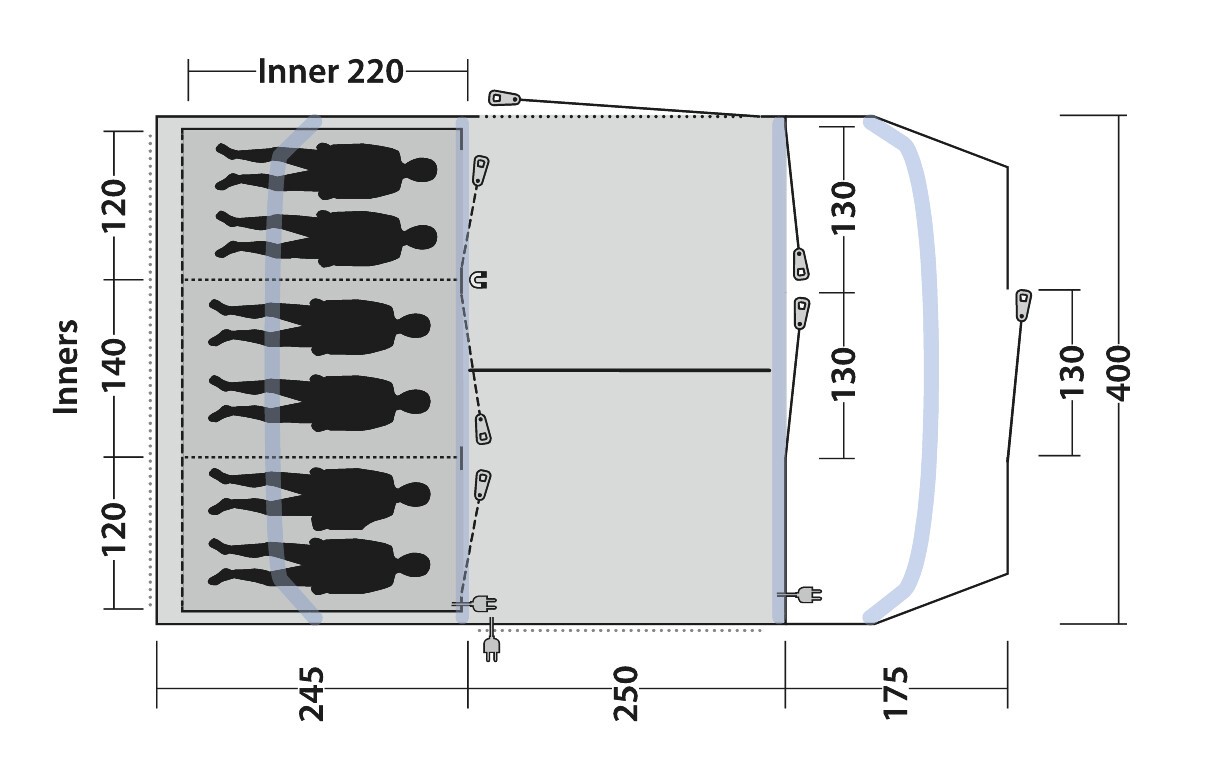 | Innenzeltmaterial: | 100% atmungsaktives Polyester, verdunkelte Premier Bedrooms |
