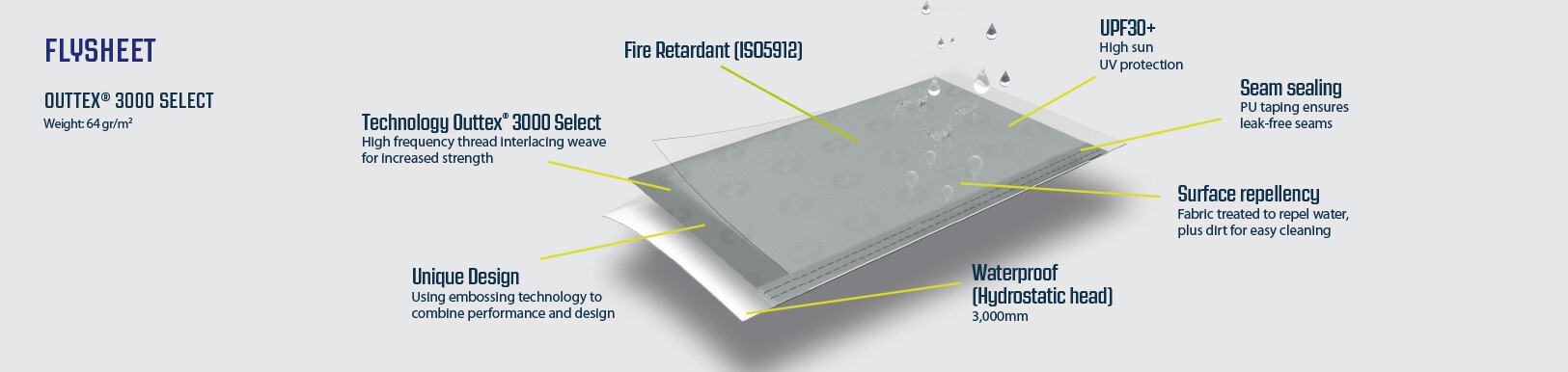 | Außenzeltmaterial: | Outtex® 3000 Select Polyester |