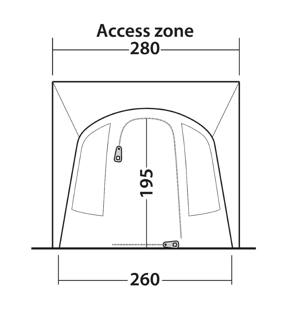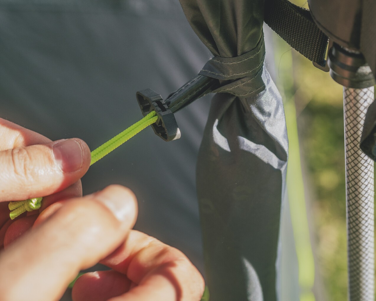 - Kabelöffnung: kleine Öffnung mit Reißverschluss zum Einlassen eines Elektrokabels ins Zelt sowie ins optionale Innenzelt