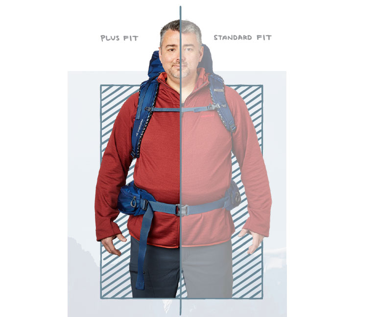 Die laut Gregory branchenweit erste Linie von Rucksäcken in Übergrößen, speziell entwickelt für Outdoor-Begeisterte mit unterschiedlichen Körpergrößen und -formen: