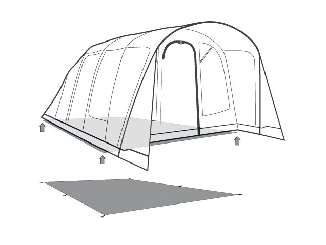 Diese praktische Unterlage hält Ihren Zeltfußboden sauber und vermeidet Abrieb. Außerdem isoliert sie zusätzlich gegen die Bodenkälte. Die Unterlage muss vom Zelt vollständig bedeckt sein, damit kein Regenwasser unter das Zelt geführt wird.