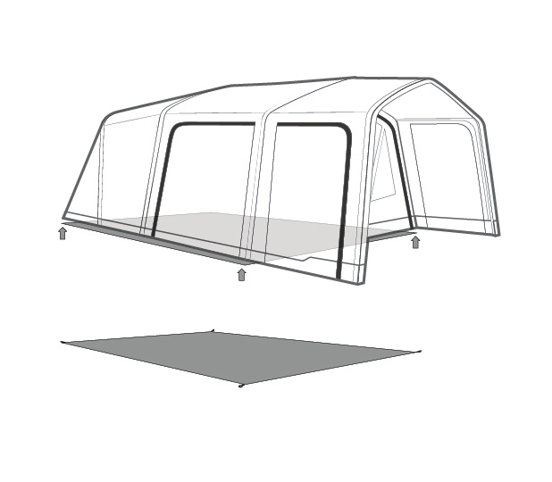 Diese praktische Unterlage hält Ihren Zeltfußboden sauber und vermeidet Abrieb. Außerdem isoliert sie zusätzlich gegen die Bodenkälte. Die Unterlage muss vom Zelt vollständig bedeckt sein, damit kein Regenwasser unter das Zelt geführt wird.